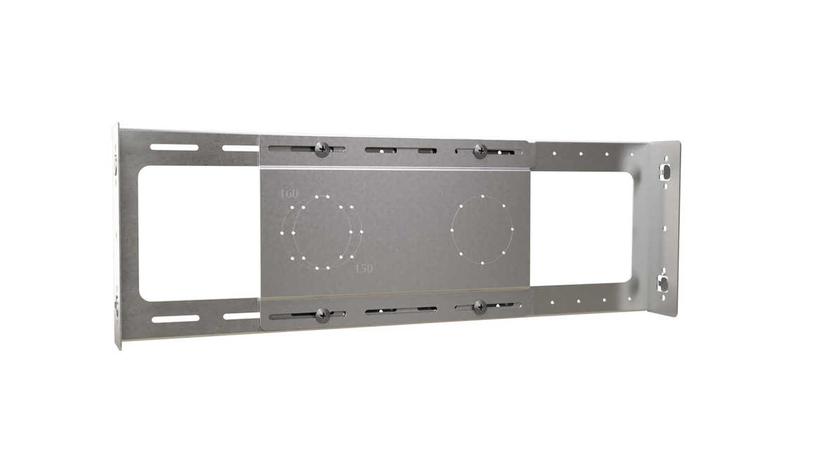 Plåten har förborrade infästningshål till LK Väggdosa UNI Push för montage c/c 150 eller 160 mm. RSK 188 26 85